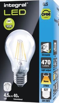 Ledlamp Integral E27 4,5W 2700K warm licht 470lumen dimbaar