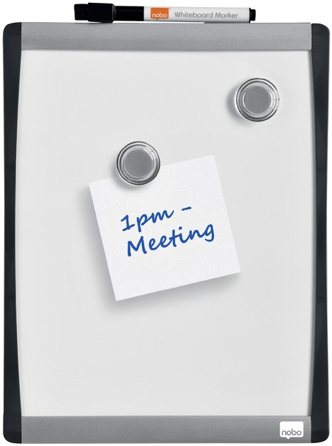 Mini Whiteboard Magnetisch 28x21.5cm Gebogen Lijst Zwart/Zilver Rexel