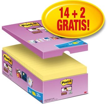 Super Sticky Notes voordeelpakken 76 x 127 mm 14 blokken + 2 blokken gratis
