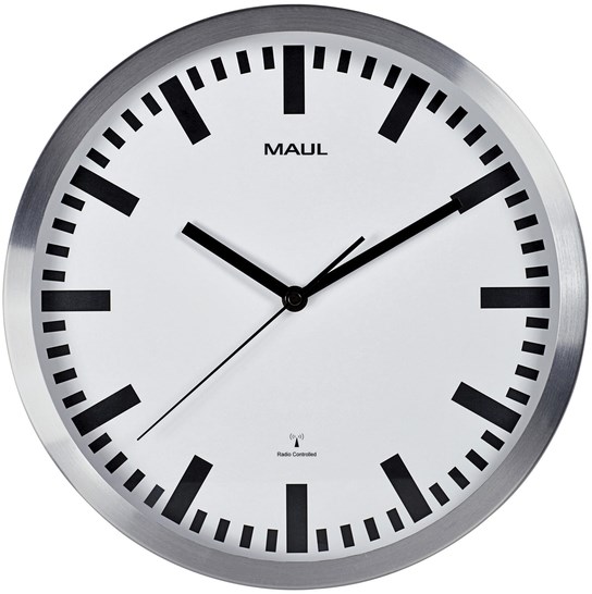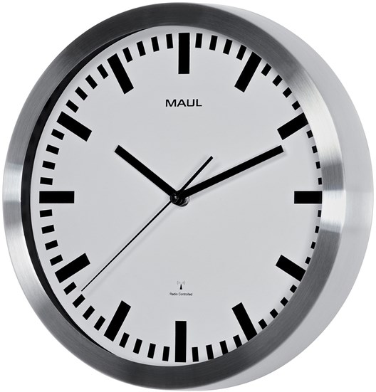 Wandklok MAUL Pilot RC Ø305x45mm aluminium frame wit incl. batterij