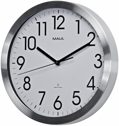 MAULmove wandklok, radiogestuurd, diameter 30,5 x 4,5 cm, aluminium kader