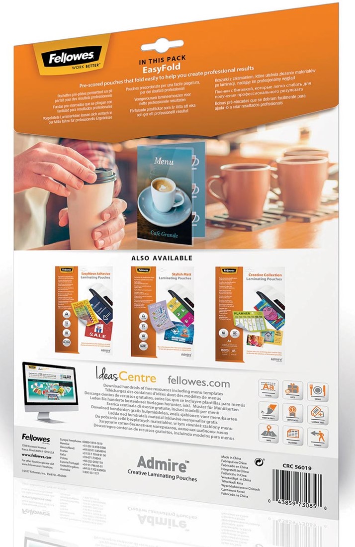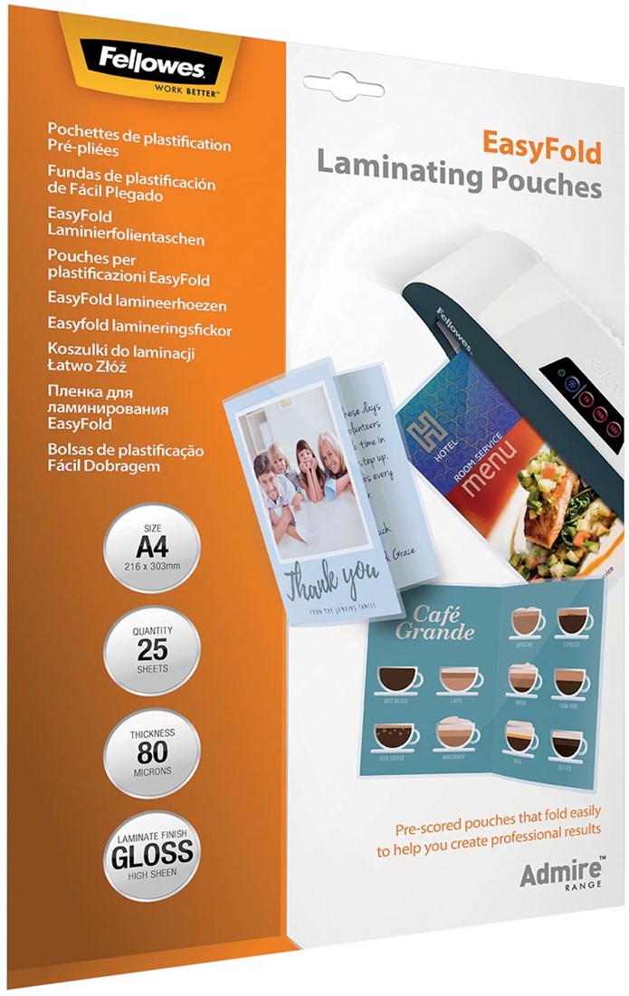 Stel een vraag over Fellowes lamineerhoes Admire Easyfold Enhance80 ft A4, 160 micron (2 x 80 micron), pak van 25 stuks 25 Stuk
