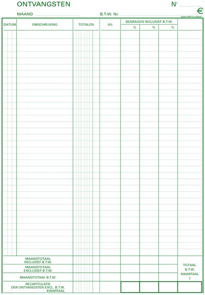 In het ontvangstenboek kan men de ontvangsten chronoligisch registreren (inkomsten) en deze aan een derde partij (boekhouder, accountant) geven met behoud van een kopie