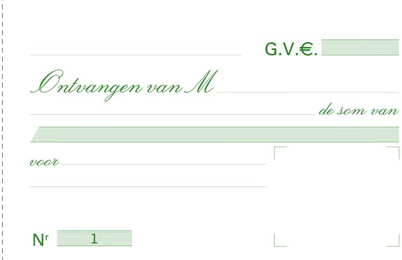 Wordt gebruikt om een ontvangstbewijs zonder vermelding van BTW te geven, met behoud van een kopie