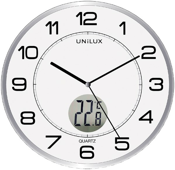 Stel een vraag over Wandklok Unilux Tempus Ø 30.5cm lichtgrijs/wit