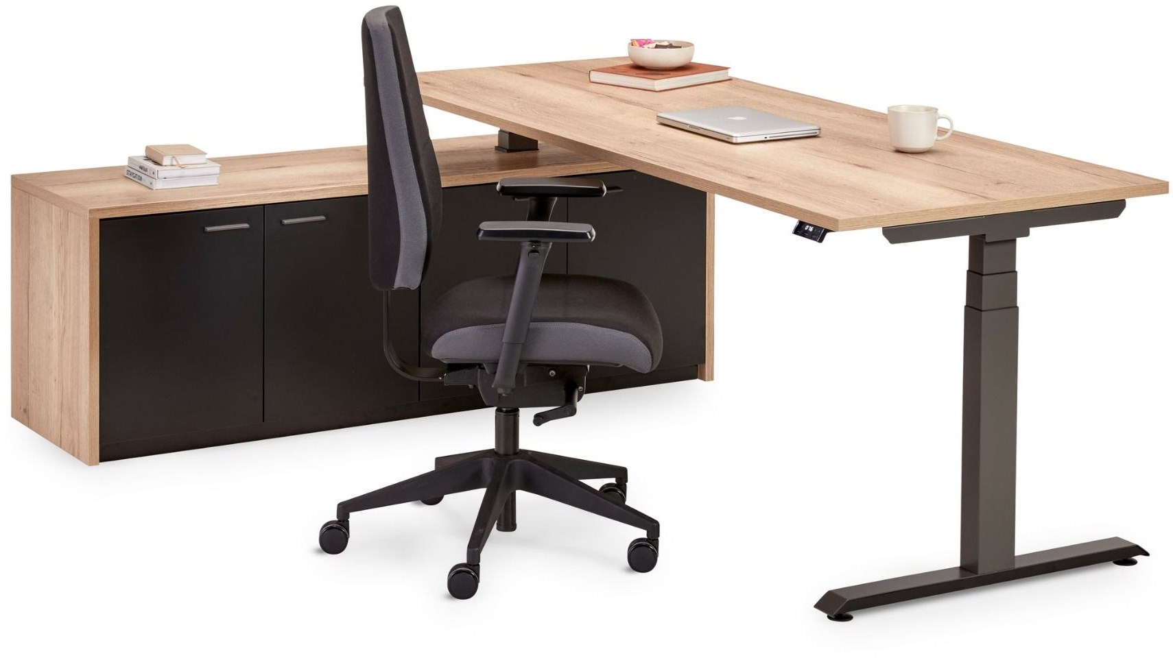 Het elektrisch verstelbare werkblad met memory-unit maakt het eenvoudig om af te wisselen tussen zitten en staan. Met één druk op de knop werk je op jouw ideale hoogte, zodat je de hele dag comfortabel en ergonomisch bezig bent.