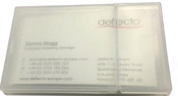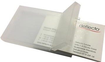 Deze visitekaarthouder is compact en past gemakkelijk in uw voor- of achterzakken. Je kan het gemakkelijk openen en sluiten door het klik systeem. Bewaar al jouw visitekaarten netjes in dit transparant en licht doosje van kwalitatief plastiek. Je kan er gemakkelijk 20 kaartjes in kwijt. Afmetingen: 63 B x 10 D x 97 H mm.