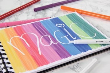 Met kegelvormige, niet-indrukbare punt. Voor dikke en dunne lijnen. Met de witte stift kan je een gedeelte wissen, zodat je hier niet met een andere kleur per ongeluk overheen kan gaan. De inkt is afwasbaar van de huid en uitwasbaar uit de meeste textielsoorten (de vlek wel eerst bewerken met de witte stift). Glutenvrij. In een metalen doos.