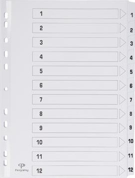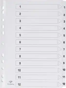 Tabblad met indexblad A4 11-gaatsperforatie karton set 1-12