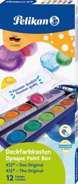 Plastic doos met 12 gekleurde napjes en 1 tube dekwit