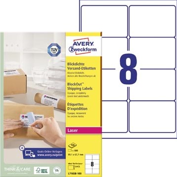 doos van 100 blad, 99,1 x 67,7 mm 800 stuks 8 per vel