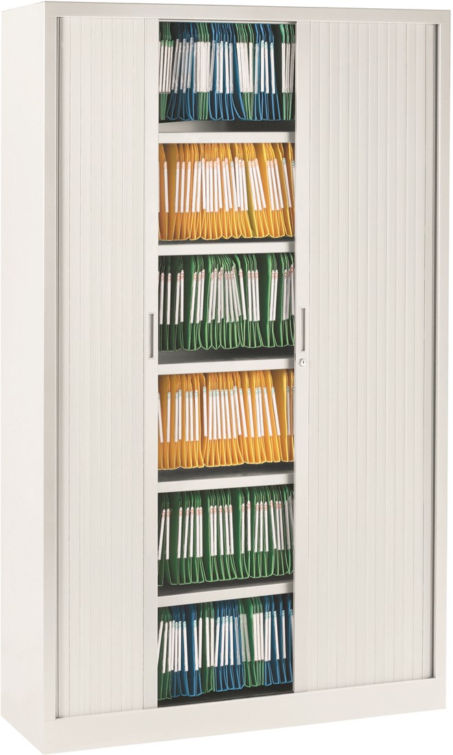De Armin roldeurkast is een stijlvolle en praktische oplossing voor het veilig opbergen van ordners, dossiers en kantoorbenodigdheden. Dankzij de soepele PVC roldeuren schuiven de lamellen volledig in de kast, waardoor er geen openslaande deuren zijn die extra ruimte innemen. Deze hoge kantoorkast combineert duurzaamheid met gebruiksgemak en is ideaal voor archiefruimtes, kantoren en werkplekken waar overzicht en orde belangrijk zijn.