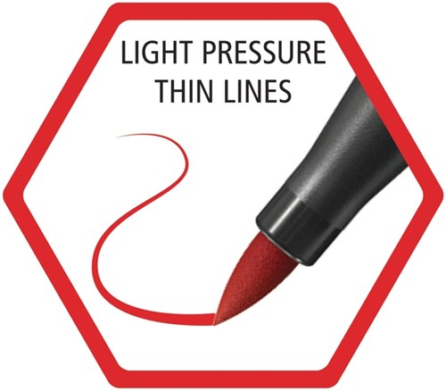 Met de flexibele penseelpunt kun je door te variëren in druk dunne én dikke lijnen maken