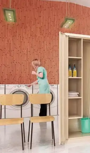- Indeling: legplanken + hoog compartiment voor emmer, dweilstok of borstel