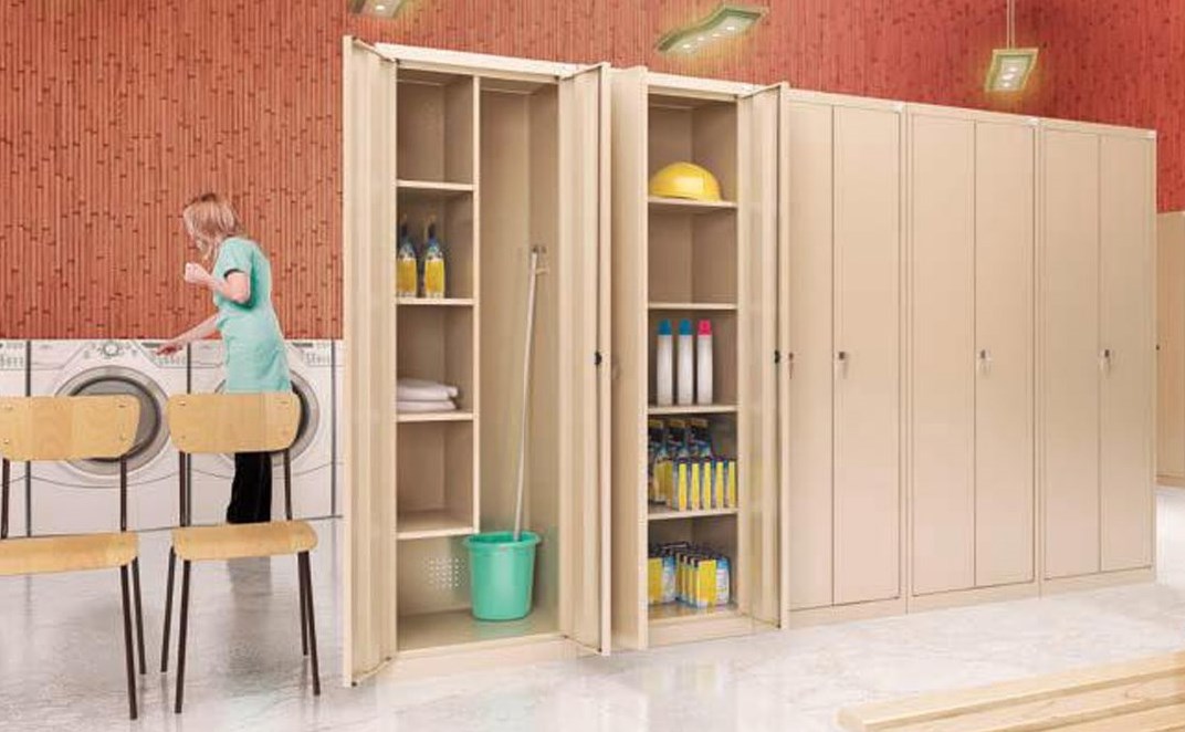 Wil je orde en overzicht in de werkplaats? In deze praktische metalen kast kan je eenvoudig gereedschap, schoonmaakmateriaal en onderhoudsproducten netjes opbergen. De kast heeft een slimme indeling met legplanken en een extra hoog vak voor een emmer, dweilstok of borstel. Zo blijft alles georganiseerd en direct binnen handbereik.