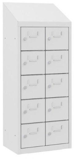 Deze mini lockerkast met 10 vakken is perfect voor het bewaren van persoonlijke spullen, sleutels, telefoons of documenten. Deze compacte metalen kast is ideaal voor kantines, recepties, scholen, magazijnen en werkplaatsen waar medewerkers of bezoekers hun eigendommen veilig willen opbergen. Dankzij het slimme ontwerp kan de locker eenvoudig aan de muur worden bevestigd of worden gekoppeld tot een grotere opstelling. De licht hellende bovenkant voorkomt ophoping van stof en maakt schoonhouden extra gemakkelijk.