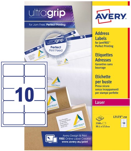 Avery etiketten L7173-250 99.1x57mm wit 2500stuks