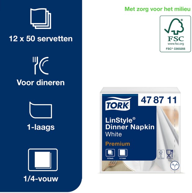 Tork Premium LinStyleNapkins zijn ideaal voor fullservice-restaurants, waar kwaliteit en indruk maken op uw gasten met name belangrijk zijn