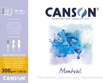 Montval aquarelpapier wit met fijne korrel 300 g/m², 18 x 25 cm blok met 12 vellen