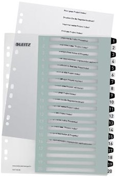 Leitz WOW printbare index, 20 tabs, zwart-wit