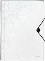 Deze projectmap van Leitz heeft zes harmonica vakken met personaliseerbare tabs voor eenvoudig herkennen van de inhoud. In het vaste vak aan de voorkant kun je losse voorwerpen bewaren als een notitiebok, tablet of foldermateriaal. Je sluit de map met een decoratieve elastische band zodat de documenten niet uit de documentenmap kunnen vallen. Deze Leitz waaiermap kan goed gecombineerd worden met de andere kantoorartikelen uit de Leitz WOW lijn zoals notitieboeken, nietmachines of perforator.