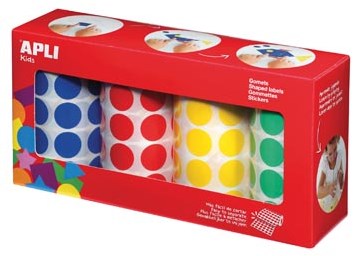 Apli Kids stickers XL cirkels, diameter 20 mm, doos met 4 rollen in 4 kleuren