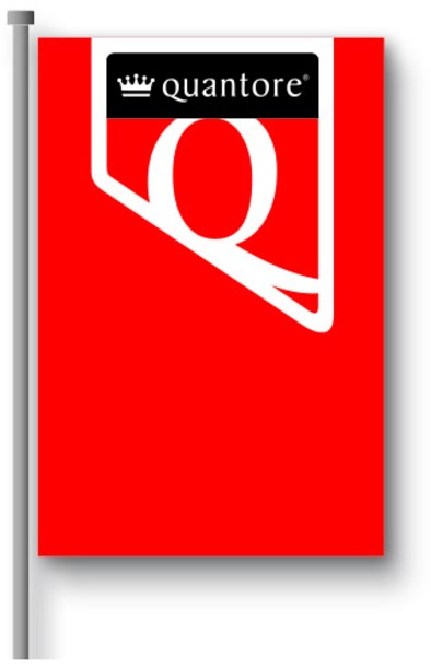 Voor outdoor promotie heeft Quantore baniervlaggen. Deze is ontworpen in de kleur rood met het Quantore logo.