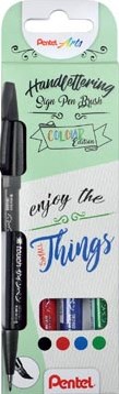 Pentel brushpen Sign Pen Brush Touch, kartonnen etui met 4 stuks: zwart, blauw, rood en groen