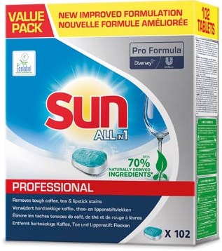Sun Pro Formula All-in-one vaatwastabletten, doos van 102 stuks