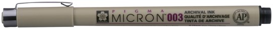 • Sakura Pigma Micron fineliner 003 met een schrijfbreedte van 0.15 mm voor het tekenen van precieze lijnen.