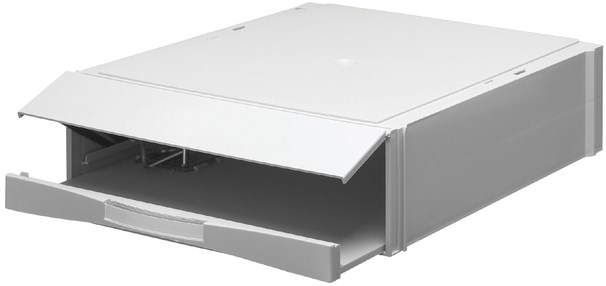 Voor stofvrije en vlakliggende opberging van documenten. Bij het uitnemen en terugschuiven van het plateau gaat de klep automatisch open of dicht. De cassette is leverbaar met of zonder een ordnermechaniek op het uitneembare plateau.
