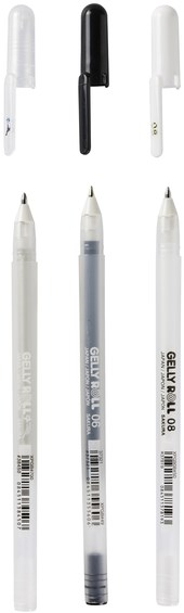 • Inmiddels bestaat Gelly Roll in veel soorten kleuren en effecten zoals Stardust (glitter), Metallic (glanzend) en Moonlight (fluorescerend).