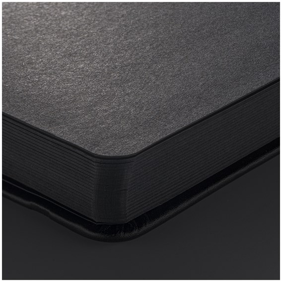 In zwart gebonden Sakura schetsboek met zwarte pagina's.