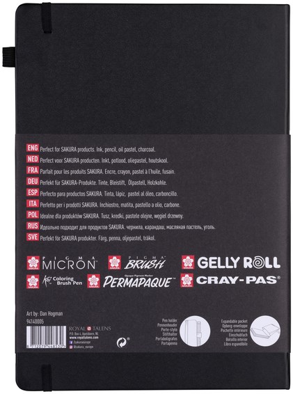Elk Sakura schetsboek heeft een handige penhouder aan de zijkant, bijvoorbeeld voor je Pigma Micron fineliner, Gelly Roll gelpen of Koi Brush Pen!