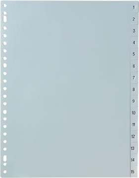 Tabbladen met nummers van 1-15 in het grijs