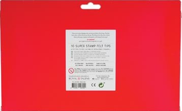 Stempelstift met figuren. Inkt op waterbasis. Uitwasbare inkt. Glutenvrij. Zigzag-effect door dubbele of drievoudige punt. Geschikt voor kinderen vanaf 3 jaar. 10 stiften in een kartonnen ophangetui.