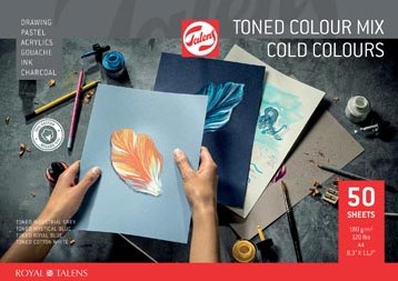 Talens gekleurd tekenpapier, 180 g, ft 21 x 29,7 cm, A4, geassorteerde koude kleuren, blok van 50 vel