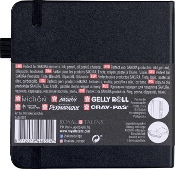 • Het hardcover boek wordt geleverd met een penhouder die perfect past bij pennen zoals de Pigma Micron en Sakura Gelly Roll.