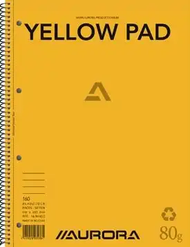 Aurora Yellow Pad collegeblok, ft A4, 160 bladzijden, gerecycleerd papier, gelijnd