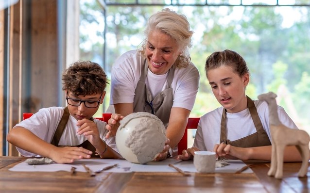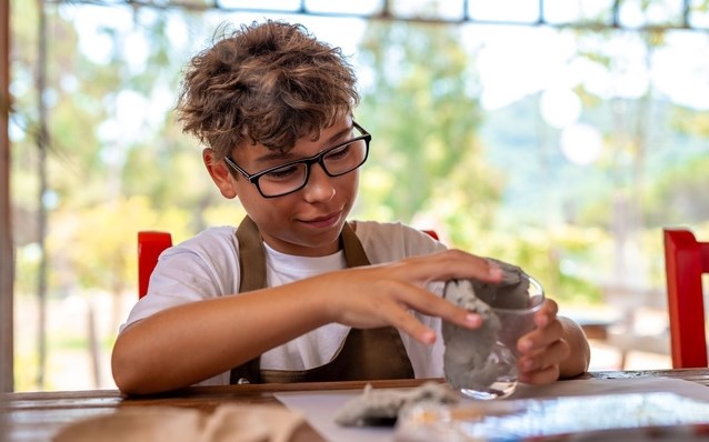 • Als de klei hard is kan je het beschilderen met bijvoorbeeld acrylverf of versieren met glitters.