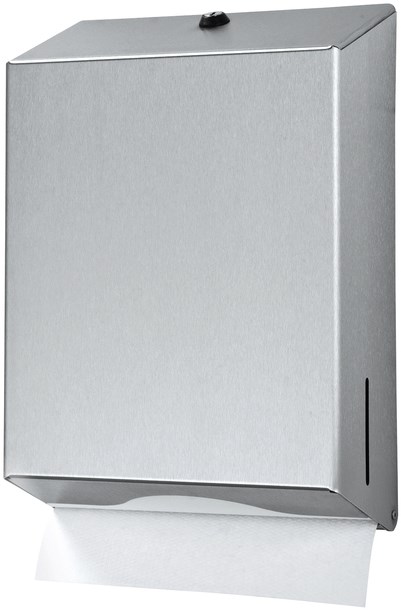 • Gebruiksvriendelijke RVS vouwhanddoekdispenser, doseert vel-voor-vel.