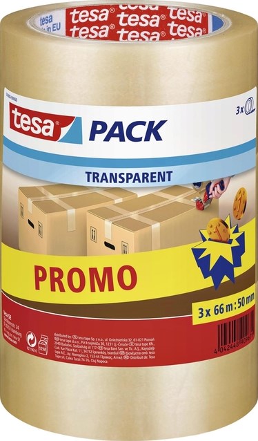 Verpakkingstape tesapack® 66mx50mm transparant promopack 3 rollen