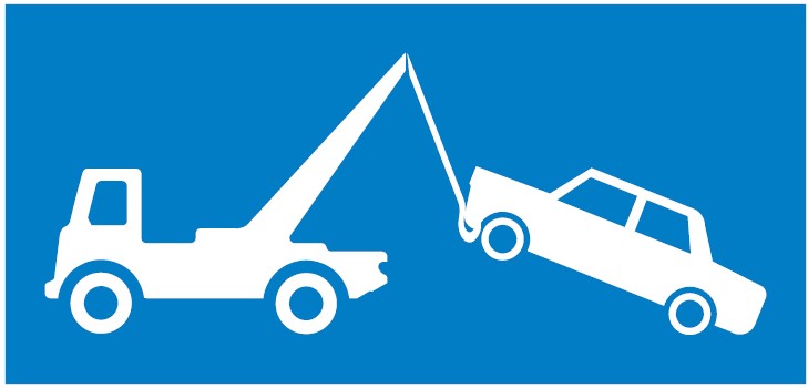 Sticker van een auto die weggesleept wordt.
