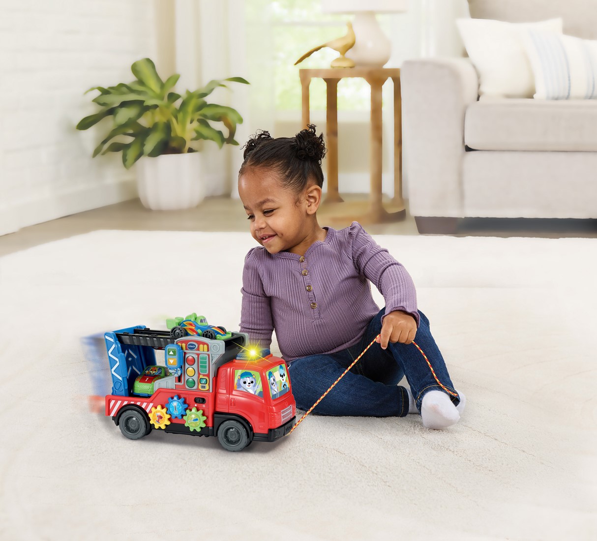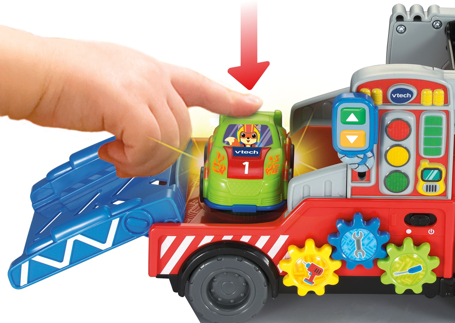 Laad de auto's op, repareer ze en laat ze van de helling racen! Druk op de tandwielen om kennis te maken met verschillende gereedschappen en plaats een auto op het herkenningspunt om vrolijke reacties te horen. Gebruik het trekkoord om de vrachtwagen overal mee naartoe te nemen.