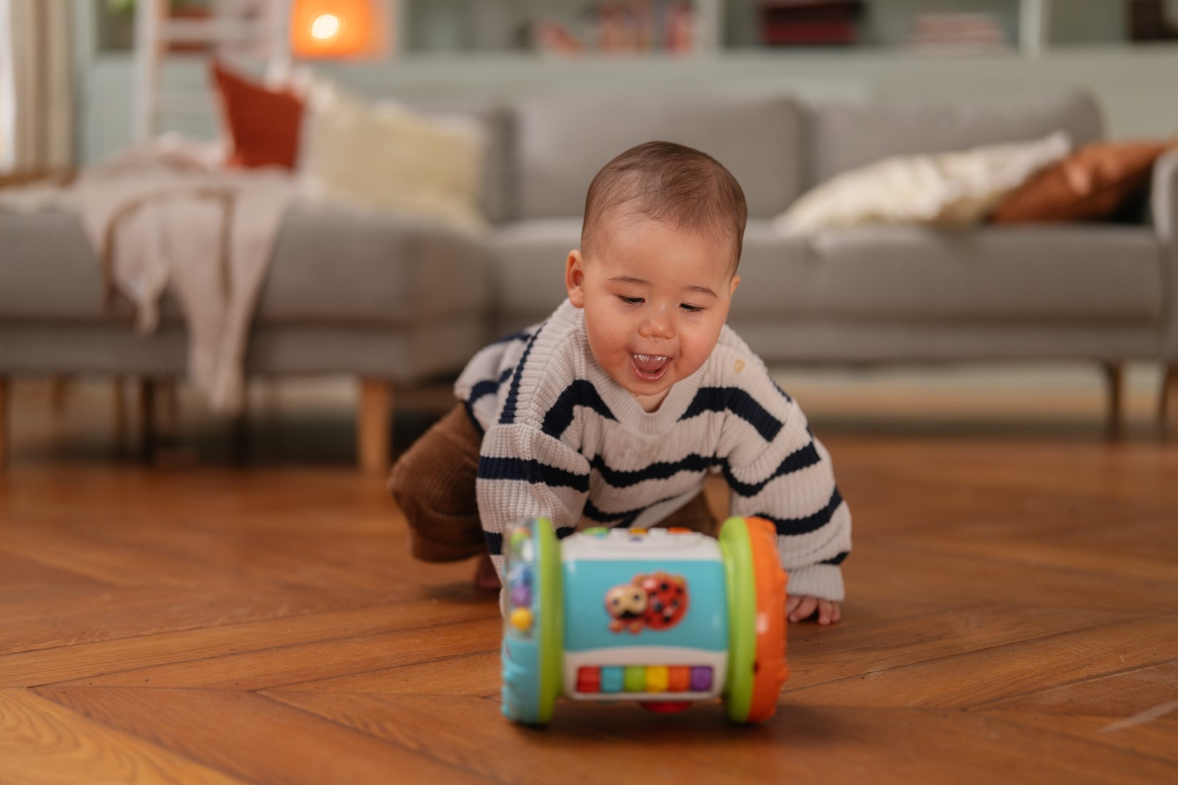 - Het speelgoed rollen om grappige geluiden en vrolijke melodietjes te horen