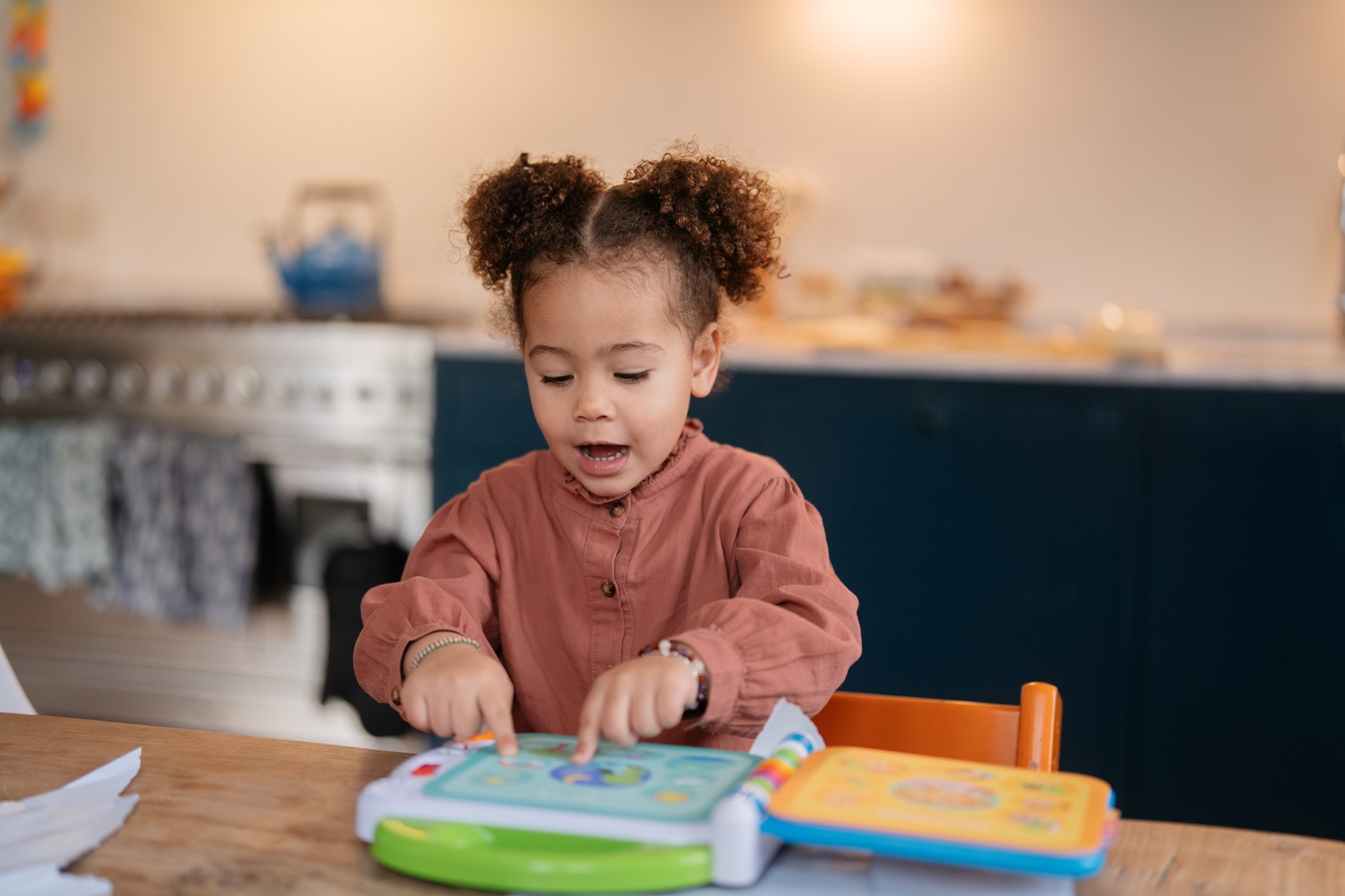 - Bevordert de ontwikkeling van de oog-handcoördinatie door het omslaan van de bladzijden en het drukken op de plaatjes
