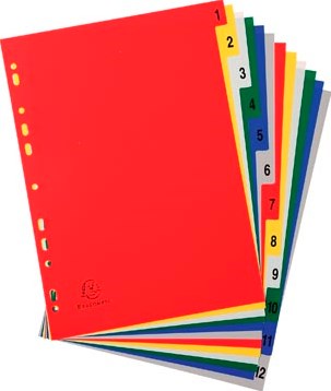 Exacompta tabbladen numeriek voor ft A4, uit PP 12/100e, 12 kleurtabs, met indexblad, wit