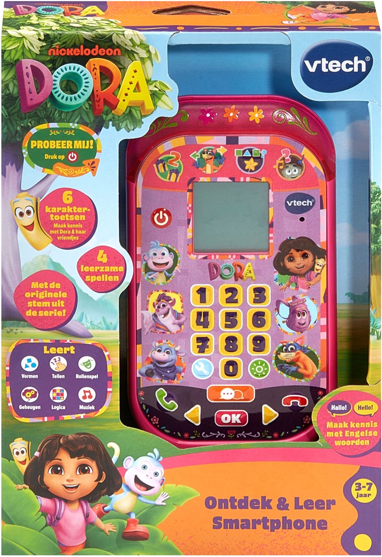 Het avontuur belt! Maak kennis met Dora en haar vriendjes en ga op een leerzaam avontuur! Maak kennis met cijfers, tellen, de Engelse taal, logisch nadenken en train je geheugen tijdens uitdagende spellen. Bel met Dora en spreek in de microfoon om te antwoorden. Ben je klaar om op ontdekking te gaan? Superfect!