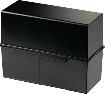 Capaciteit: 300 kaarten. Uit kunststof. Het deksel kan volledig opengeklapt worden, waardoor de capaciteit verdubbeld wordt.