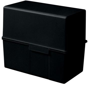 Capaciteit: 300 kaarten. Uit kunststof. Het deksel kan volledig opengeklapt worden, waardoor de capaciteit verdubbeld wordt.